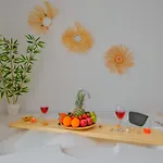 Cette propriété propose des équipements indépendants, tels qu'une cuisine équipée, un coin repas extérieur pour le confort des clients. Il y a aussi un micro-ondes, un réfrigérateur et de la vaisselle disponibles dans la cuisine.
